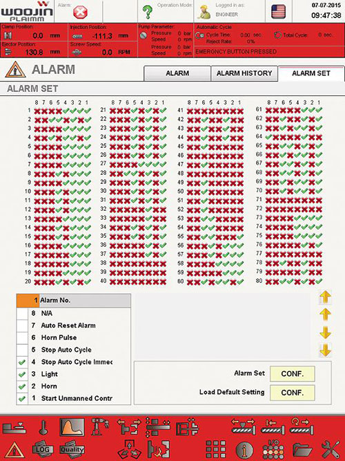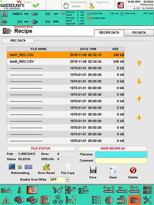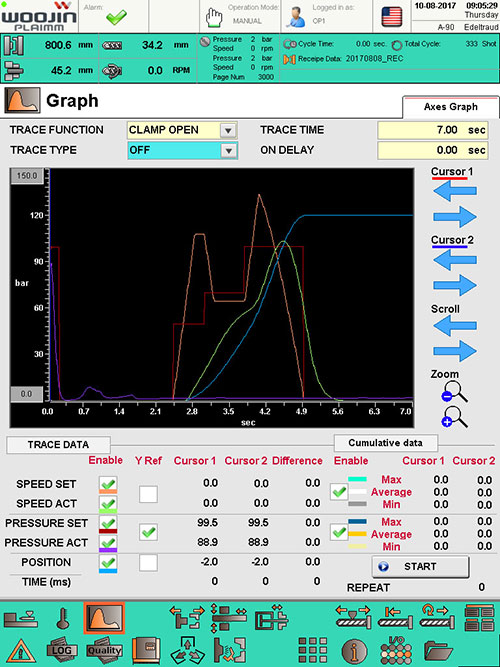 El usuario puede configurar la máquina para detenerse después de un número definido de ciclos o un tiempo establecido. El usuario también puede configurar, registrar y monitorear los datos del ciclo en función de la elección del usuario de muchos criterios: posición del colchón, temperaturas de las zonas del calentador, tiempo de llenado, etc.